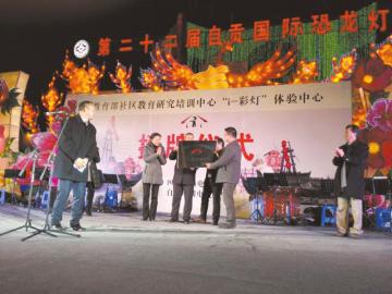 - 2016年2月3日授牌仪式现场华西城市读本讯(记者陈伯强摄影报道)2月2日晚上7点,在自贡市东方广场举行了国家级“i-彩灯实验室”体验中心授牌仪式。“i彩灯实验室”是由教育部社区教育研究培训中心批准,旨在通过互联网向全世界宣传彩灯文化,提升和扩大自贡彩灯影响力;线下提供各界人士参与、体验、创造、分享彩灯创意和制作的乐趣。该国家级的“i-彩灯实验室”中的“i”具有多层含义,爱、创新、个性、互动、乐趣、激发等,自贡广播...