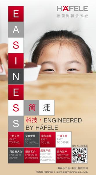 - 2015年10月15日2015年10月21日-23日,全球家具五金、建筑五金和电子锁门禁系统供应商海福乐五金(中国)有限公司将携众多精选产品和创新的服务理念在上海国家会展中心举办的2015中国国际厨房博览会(简称“CIKB”)亮相。届时,海福乐将在H4.2G066展台以“简·捷”为主题,向客户介绍“小空间、大生活”的理念。此外,展会期间海福乐上海旗舰店(上海市徐汇区凯进路269号光启城)将延长开放时间至晚间8点。简·捷...