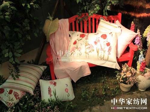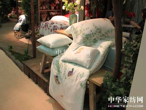 提籁雅家纺研发部总监唐卫华先生(以下简称唐):我们这次的展台设计,从整体上来讲是一种自然与人文的结合,所以,我们展台上的每一个区域和每一个物件都充分的表达了这种诉求,别墅后花园一般的设计让人瞬间放松下来,这就使得参观者从直观感受提籁雅展位的与众不同引申到对提籁雅家纺产品的兴趣。